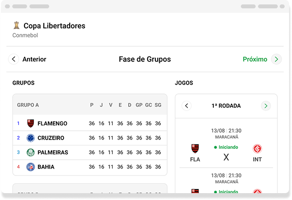 Tabela de classificacao para os campeonatos disputados por times brasileiros.